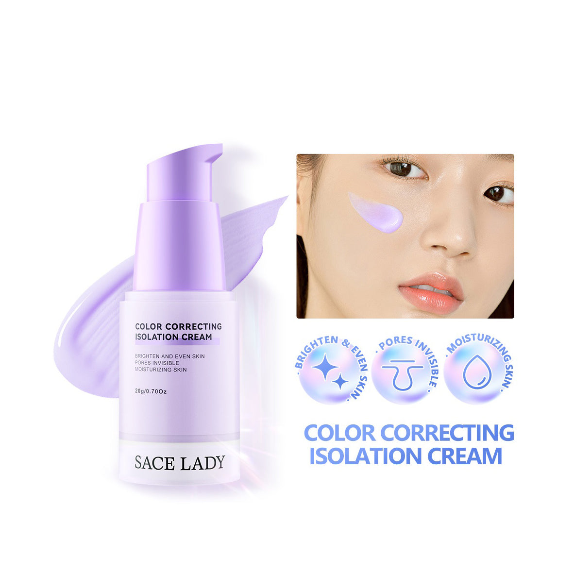 Enhance your makeup routine with Sace Lady Color Correcting Brightening Face Primer Cream. This lightweight, color-correcting primer smooths skin, minimizes pores, and provides a flawless, long-lasting base for your makeup.