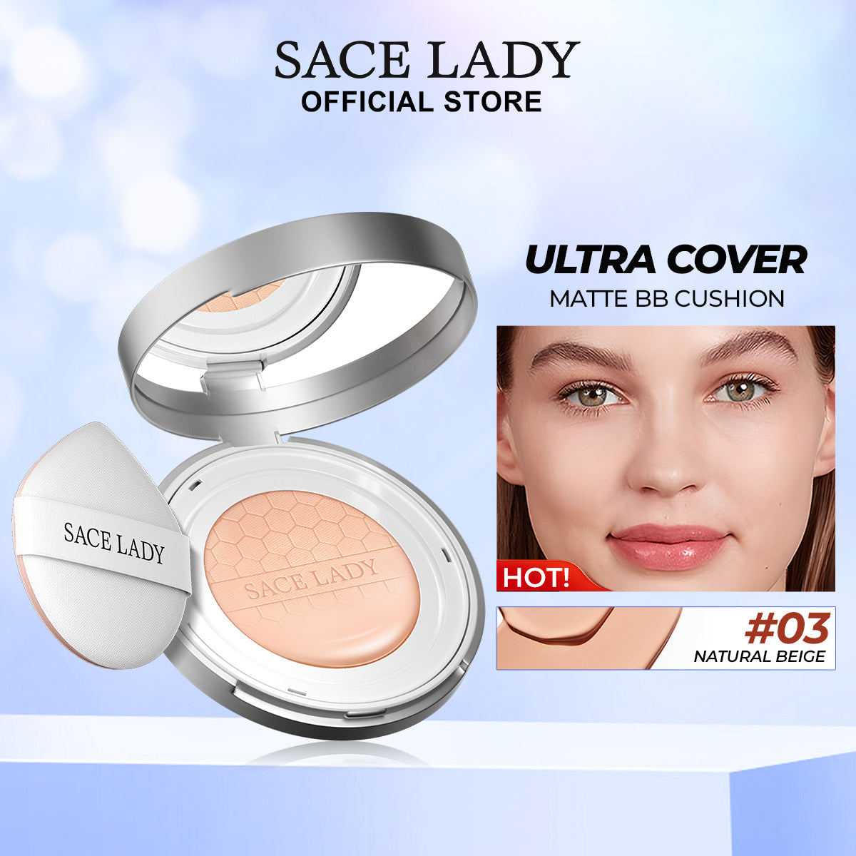 Experience flawless, long-lasting coverage with the SACE LADY Matte BB Cushion Foundation. This full-coverage, breathable foundation offers a natural matte finish that stays fresh for up to 24 hours. Designed with three powerful oil absorbers, it ensures a sweat-proof, waterproof, and transfer-proof finish. With SPF 30/PA+++, it protects your skin from harmful UV rays while being suitable for all skin types. The portable cushion design makes it perfect for on-the-go touch-ups.